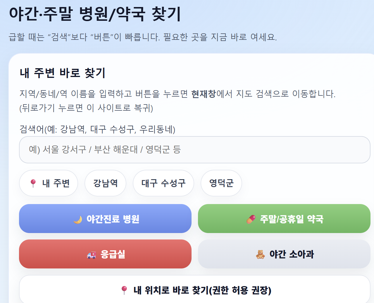 - 강남구 야간·휴일 약국 찾는 방법 하나 저장