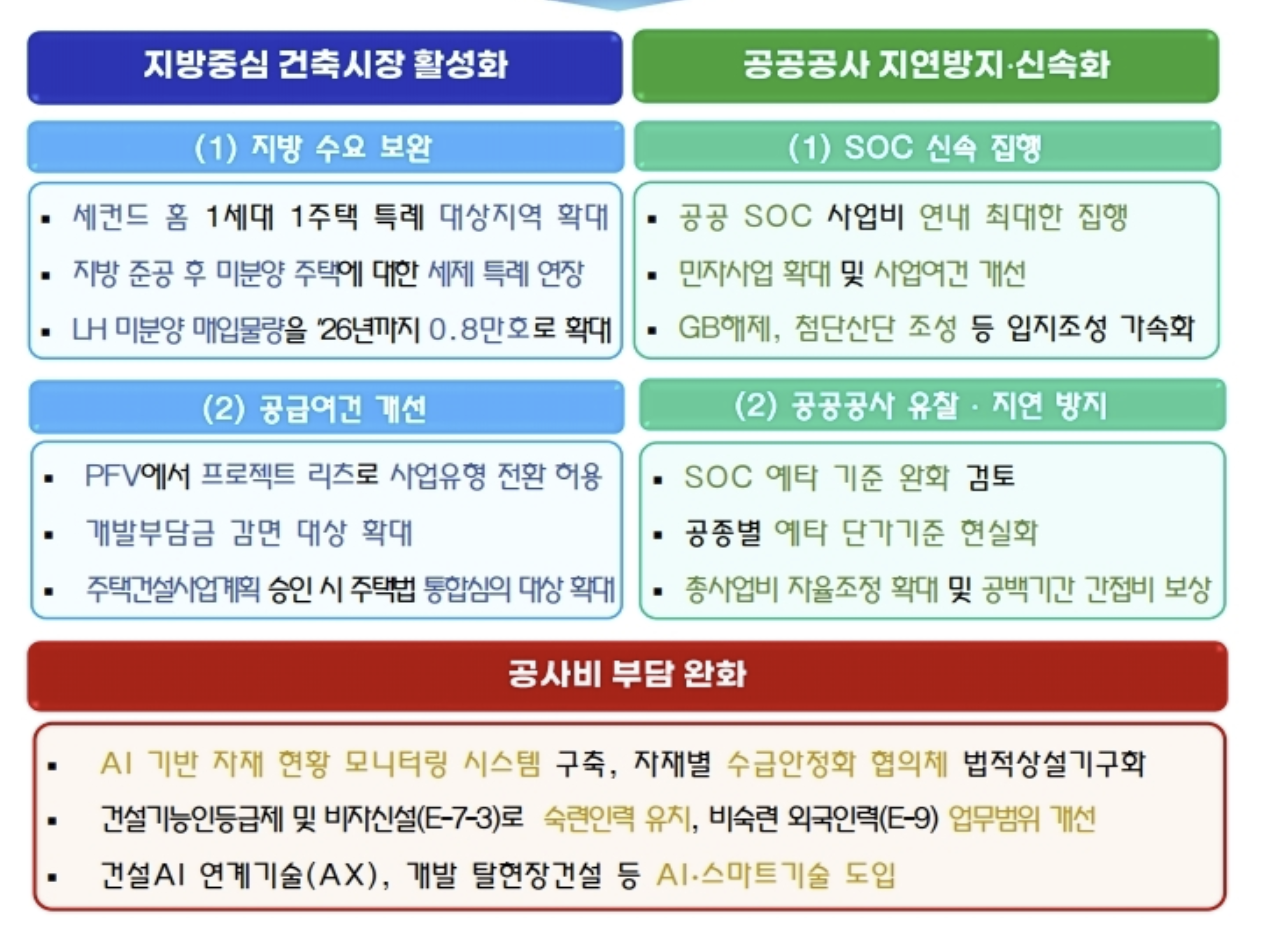 - LH(한국토지주택공사): 지방 미분양 매입 물량을 3천 호 → 8천 호로 확대